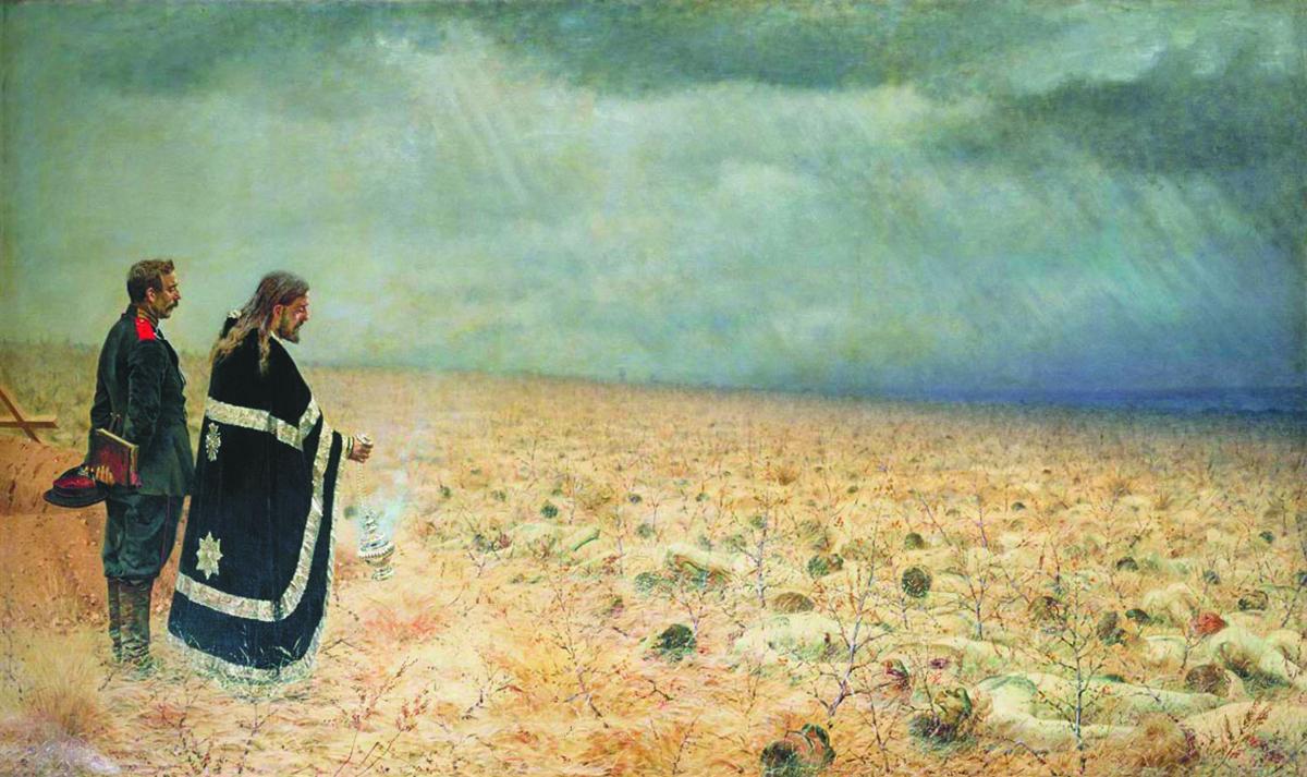 Страшные картины войны списаны, что называется, «с натуры». Верещагин навсегда запомнил смерть одного солдата: получив тяжёлое ранение, он выронил ружьё, схватился за грудь и побежал с криком: «Убили меня, братцы! Убили!» Пробежав несколько кругов, несчастный замертво рухнул на землю. Пять лет спустя Верещагин напишет картину «Смертельно раненый». Полотно станет его реквиемом, памятью о страданиях и гибели всех солдат, оказавшихся жертвами военного безумия.