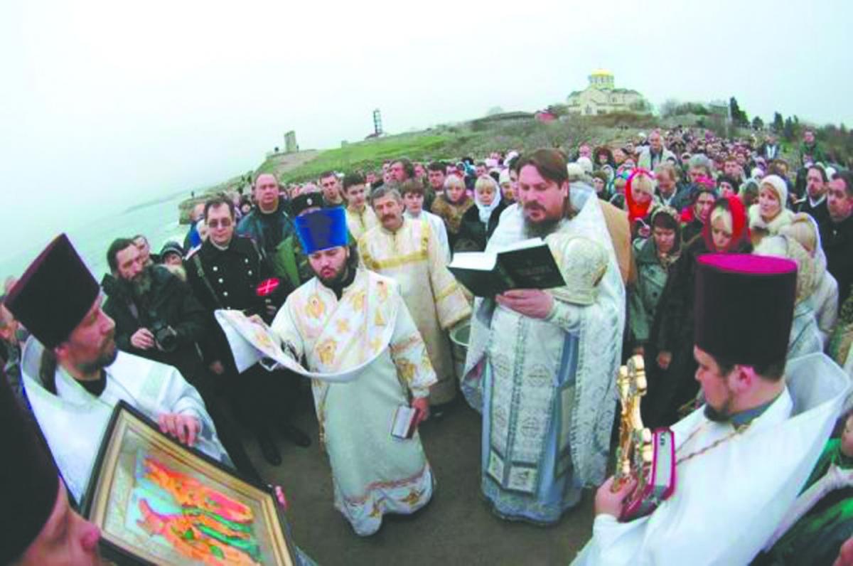 Сначала в церкви Святого Богоявления прошёл молебен. После него – крестный ход к Чернореченскому водохранилищу. Здесь недалеко от гранитного креста благочинный Севастопольского округа протоиерей Сергий Халюта совершил освящение воды.