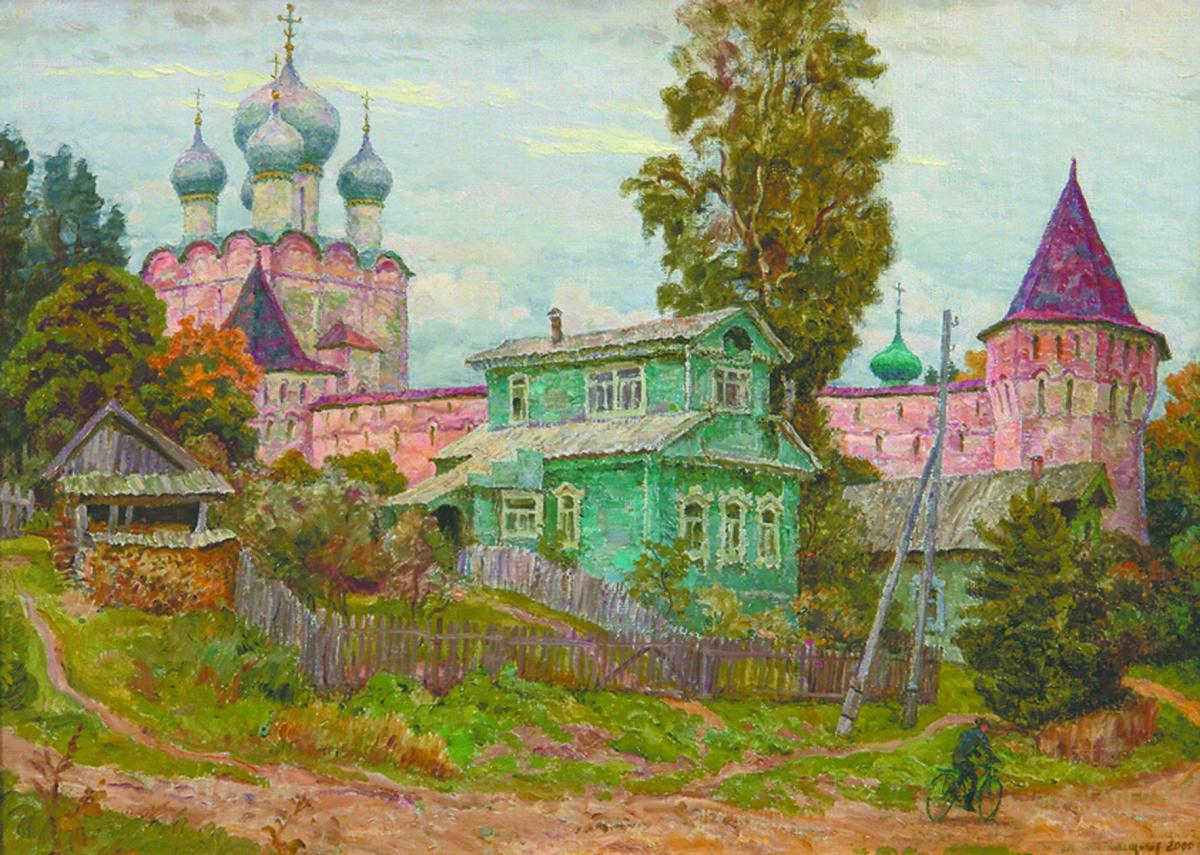 – Не одно лето я живу с семьёй в Борисоглебе. Моя жена Финогенова Млада Константиновна, наш сын Антон и я – все мы московские художники. Прогуливаясь в монастырской тишине, часто задумывался: каждое поколение действительно трудилось и над ландшафтом, и над духовным миром человека, ведь человек складывается не из плоти, а из духовных начал. Примерно шесть поколений строили наш кремль. Одни начинали строить, другие продолжали... Связь поколений не нарушалась. Наши предки построили много городов, и мы, при всём их архитектурном многообразии, в каждом найдём свои значительные черты. Сами соборы, улицы, деревни имели свою узнаваемость. Любая национальная культура потому и узнаваема, что имеет свои песни, танцы, архитектуру. Стыдно, но сегодня мы, русские, не видим ту отличительную красоту в ланд-шафте, в архитектуре, что заложена была нашими предками. Одинаковые безликие по архитектуре дома, посёлки без своего «лица» – разве этим продолжается традиция русских зодчих?!