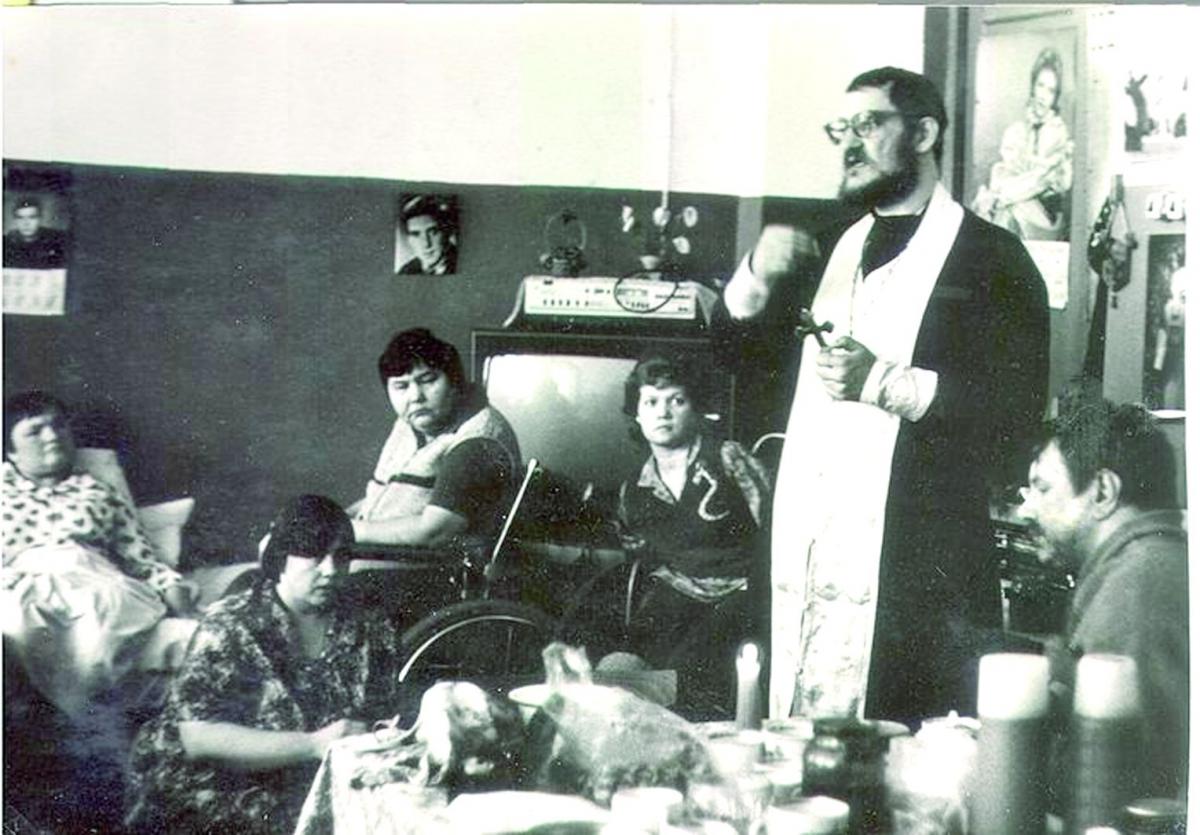 Передвигаться на низкой тележке, отталкиваясь руками, смотря постоянно снизу вверх, хоть и привычно, но не очень удобно. Много читала. Однажды, грустя, подняла глаза выше и увидела священника. Тогда наступило время возвращения Русской Церкви. Гонения закончились. Как-то после молебна в интернате к отцу Василию Павлову подъезжает на своей низенькой тележке девушка. Сначала, по его словам, священник увидел её огромные глаза: «Я хочу с вами поговорить» – «Да?» – «Мне бы хотелось креститься».