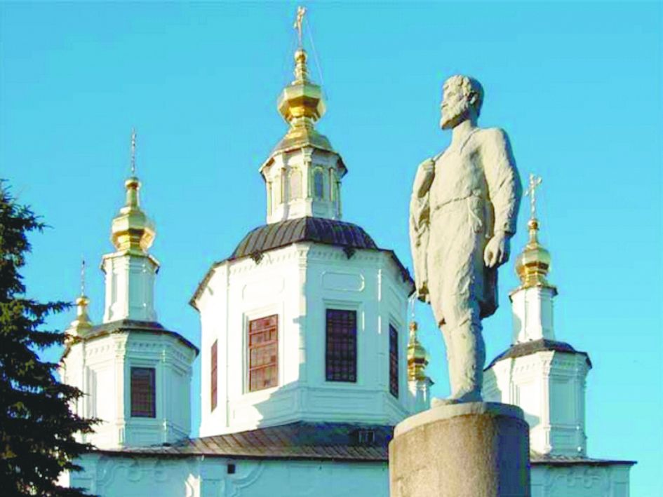 На площади у Успенского собора памятник землепроходцу Семёну Дежнёву. Известен его знаменитый поход за пушниной (1648 год). Заодно он делал географические открытия, например, открыл пролив между Азией и Америкой, который почему-то назвали Берингов, но мыс Дежнёва на карте есть. В городе установлен памятник Хабаро’ву. Именно Хабаро’ву, а не Хаба’рову, как мы привыкли говорить. Благодаря ему богатый северный край вошёл в состав Российского государства уже в XVII веке.