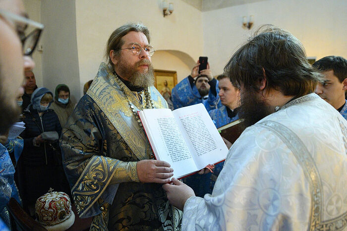 За богослужением было совершено рукоположение выпускника Сретенской духовной семинарии Димитрия Кириченко в сан диакона. На 6-м часе была совершена хиротесия ставленника во чтеца, а на 9-м – поставление в иподиакона. После Евхаристического канона была совершена диаконская хиротония.