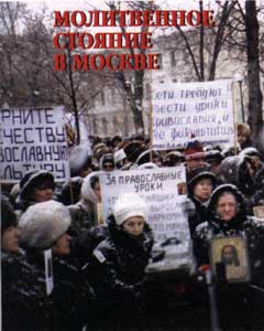 Поводом к собранию стала нашумевшая в СМИ кампания с целью сорвать преподавание этого предмета, который уже не первый год изучается в ряде регионов страны. В полемике подменяется сущность проблемы - никто не собирается насильно обучать детей религиозным обрядам; речь идет об эстетической стороне православной культуры, да и то в рамках факультатива. "Мы требуем гораздо меньше того, что есть в европейских странах, где изучение основного вероисповедания является частью школьной программы. Нас, православных, в России более 80%, и мы должны защитить свои права", - подчеркнули выступающие. Курс православной культуры - защита от широко распространившейся пошлой псевдокультуры, которая развращает молодежь, и Министерство образования не должно уступать воинствующим атеистам. Православные решили обратиться с просьбой к президенту как первому мирянину проявить политическую волю и поддержать православное большинство граждан России. В обращении подчеркивается, что "антицерковная истерия в СМИ по вопросу преподавания "Основ православной культуры" повторяет пропаганду "Союза воинствующих безбожников 20-30 годов. Это - настоящая информационная война против Церкви". Участники акции выступили также против попыток антицерковного лобби воссоздать рудимент советского тоталитаризма - Совет по делам религий. Собравшиеся обратились с просьбой ко всем православным мирянам ответить на вызов противников духовного возрождения России телеграммами президенту, председателю правительства и министру образования в поддержку преподавания "Основ православной культуры". Молитвенное стояние продлилось около полутора часов. |