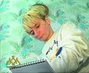 Знакомьтесь - Елена Ватан, ей 25 лет. Казалось бы, злодейка судьба сделала всё, чтобы лишить этого человека радости (у неё от рождения нет кистей рук, укорочены ноги), но не получилось. Лена - художник. Рисует, сколько себя помнит, чаще - шариковой ручкой. Использует ею же изобретенную технику: сплетает свои рисунки из бессчетного числа колец. Линию, нарисованную пастой, уже не исправишь. Лена считает, что художник ценится именно точностью штрихов. А талант, уверена, от Бога. Его благословение чувствует каждой клеточкой.