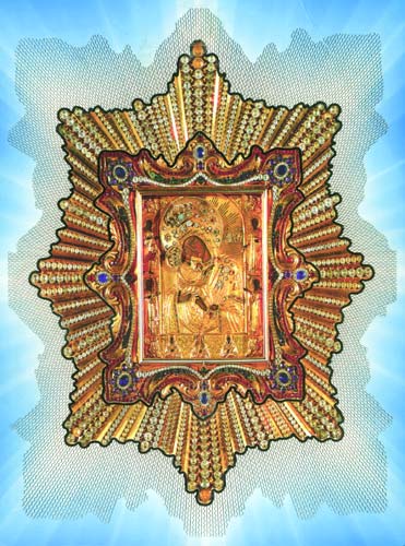 сиянии Сама Царица Небесная, выступая впереди ангелов, держащих