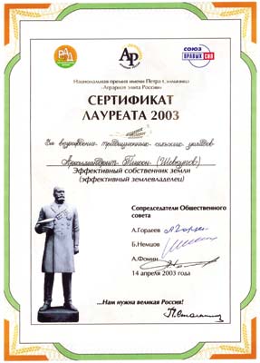 В номинации "Эффективный землевладелец, за возрождение сельских