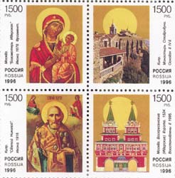Последняя марка серии изображает Свято-Успенский Псково-Печерский