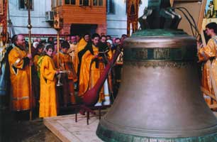 и первое богослужение. Владыка освятил 15 монастырских колоколов,