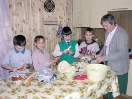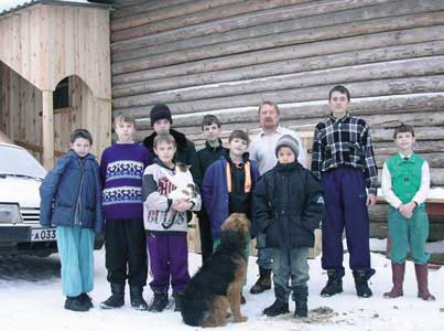 Это большой, тёплый и очень уютный дом. Тёплый - не столько физически, сколько душевно. Три дня прожила я здесь гостьей и ощущала этот уют и тепло, и всё большую радость от общения с хозяевами - Валерием и Татьяной Херувимовыми - и с детьми, такими разными и всё-таки уже чем-то похожими: приветливыми, живыми и непринуждёнными. Детей в доме десять: двое младших Херувимовых, Ваня и Даша, и восемь приёмных мальчиков. Это православный детский дом семейного типа при храме святителя Николая в Нейском районе Костромской области ("Русский Дом" уже упоминал о нём в № 1 за этот год).