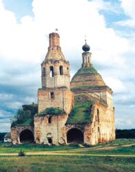 Успенская церковь с приделами Рождества Христова, свт. Николая Чудотворца и свт. Василия Великого - выдающееся произведение русского зодчества, даже теперь, в полуразрушенном виде, поражает своими формами. На облупившихся стенах ещё просматриваются лики святых, но пятна сырости и грязи расползаются всё дальше.