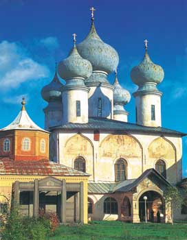 Как известно, "отвсюдуже преславно всеми видемая" каменная церковь Успения Богородицы строилась в 1507 году на средства великого князя Василия III Иоанновича, когда на Ладоге, где явилась икона, произошло ещё одно знаменательное событие нашей православной истории - явление преподобному Александру Свирскому - единственному из русских святых - Пресвятой Троицы. Об этом чуде Дмитрий Сырков, строитель церкви Успения Богородицы, мог и не знать, но кажется, что он ощущал дыхание великого события, закладывая столь грандиозный для отдалённых, порубежных мест собор. Прообразом ему послужил главный храм Московского Кремля, и это в духовной традиции значило очень многое. Храм, как справедливо отмечают исследователи, становился свидетельством особого отношения великих князей к святыне, которая своим происхождением и обретением связывала Русь с всемирной христианской историей. Не случайно и то, что, когда завершили через шестнадцать лет строительство каменного собора Успения Пресвятой Богородицы, великий князь Василий III Иоаннович самолично приехал в Тихвин в сопровождении преосвященного Макария, архиепископа новгородского, будущего митрополита всея Руси. Василий III Иоаннович, по сути, завершил начатое отцом дело собирания Руси в единое государство. Наследник престола был необходим, чтобы не началось новое, гибельное для Руси дробление... "Востекла" к престолу Божию и молитва Василия III Иоанновича. В 1530 году, за три года до кончины великого князя, прогремел гром и заколебалась земля. Это родился наследник престола - будущий царь Иоанн Грозный... Строительство самого Успенского монастыря относится уже к его царствию. Вымоленный у Тихвинского образа Богоматери Иоанн IV Васильевич всегда с особым благоговением относился к этой иконе. Он молился "у Пречистой на Тихвине" в 1547 году, когда первым из российских монархов венчался на царство и вступал в брак с Анастасией Романовной, а когда через тринадцать лет умерла она, повелел основать в Тихвине монастырь. Всего за один сезон 1560 года был возведён монастырь-крепость. В царствование Михаила Феодоровича Романова шведы не единожды осаждали монастырь. Но Пречистая не допустила врага до Своей обители. В память чудесного явления Тихвинской иконы Богоматери и одоления врагов предстательством Заступницы Небесной, 26 июня (9 июля по н. ст.) отмечается Русской Православной Церковью как праздник в честь Тихвинской иконы Богоматери. Интересно, что мир со шведами, который был подписан в 1617 году в деревне Столбово, заключали перед точным списком с чудотворного образа. Слава о Тихвинской иконе широко распространилась по Руси... Считается, что было двадцать благодатных списков с чудотворной иконы, но, разумеется, самой почитаемой оставалась сама Тихвинская икона, написанная апостолом Лукой. Великое множество чудес явлено от неё. И тут надо отметить, что ни вражеские нашествия, ни огонь губительных пожаров не опасны были иконе, и только неверие и равнодушие, очерствелость сердец самым губительным образом отражались на общении верующих с чудотворной иконой. Как-то необыкновенно и необъяснимо уходит икона от людей, недостойных её... Высоким предостерегающим смыслом наполнен эпизод, связанный с попыткой "подновить" чудотворную икону. В 1636 году игумен Герасим, по разрешению царя Михаила Феодоровича, пытался об