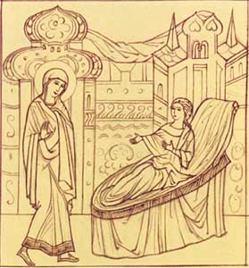 Отец Геласий рассказывал, что когда был послушником этого монастыря, однажды ночью во время утрени, увидел, как из Царских врат алтаря вышли две величественные женщины. Первой на вид было около 60 лет, вторая - совсем молодая. Они стали раздавать монеты тем, на кого указывала ей старшая жена. Некоторых они обходили. Отец Геласий поведал об этом видении известному старцу отцу Афанасию. Тот сказал, что первой женщиной была Сама Богородица, а второй - святая Анастасия Римляныня.