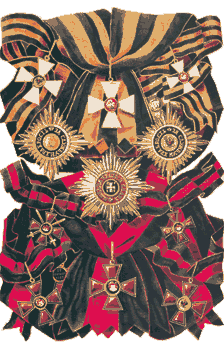 Орден Святого Георгия жаловался скупо, награждённый им, где бы ни появился, привлекал к себе всеобщее внимание. В течение первого столетия существования ордена 4-ю степень за храбрость в бою получили только две тысячи двести тридцать девять человек. Прославленные блестящими победами П.И. Багратион, А.П. Ермолов, Н.Н. Раевский, Ф.Ф. Ушаков, П.С. Нахимов, МД Скобелев были кавалерами 2-й степени. Награждение орденом 1-й степени как высшим отличием для высшего командования было исключительной редкостью. Среди удостоенных 1-й степени - П.А. Румянцев, А.В. Суворов, М.И. Кутузов... Ни военные действия против Османской империи и блестящие победы русских войск на суше и на море, ни массовый героизм в войнах с Наполеоном, ни оборона Севастополя не увеличивали сколько-нибудь значительно численность кавалеров ордена Святого Георгия - и тем выше была цена награды. Но "Георгий" был не только личным отличием, георгиевских отличий удостаивались и совершившие подвиг воинские части. Это были нашивки, наградные серебряные трубы, георгиевские ленты на знамёна и штандарты. Эти ленты стали знаком русской чести и доблести. После героической обороны Севастополя георгиевская лента была внесена в его герб.