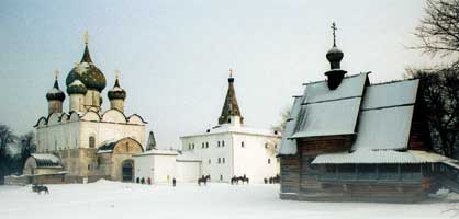 Разумеется, было бы несправедливо винить в бедах, свалившихся на суздальчан, одну городскую администрацию. Например, в 70-х годах государство потратило огромные средства, чтобы выстроить на окраине Суздаля целый городок - Государственный туристический комплекс. В начале 90-х годов ГТК приватизировали и назвали его ОАО "Турцентр". Тогда же, в начале 90-х, вышел Указ Президента РФ о передаче Церкви объектов религиозного назначения, экспроприированных у Церкви после 1917 г. В итоге Турцентру, в советские годы владевшему также и комплексом Покровского женского монастыря, пришлось потесниться: в 1992-м в стенах обители поселились первые монахини во главе с матушкой Софией, В те же годы на уровне Министерства культуры РФ был составлен план постепенной передачи монастырских объектов Церкви. Однако коммерсантов оказалось не так-то просто сковырнуть отсюда: они успели приватизировать рубленые дома вдоль монастырских стен (так называемые "кельи" - гостиничные номера), баню, и даже... Зачатьевский храм, приспособленный отныне под ресторан - "Трапезную".