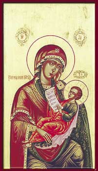 После этого случая множество больных и скорбящих приезжали (и ныне приезжают) к чудотворному образу и получают исцеление и утешение. Свидетельства о том поведает вам каждый верующий человек. На этой иконе Пресвятая Дева склонила Свой Лик на левую руку, как бы прислушиваясь к нашим молитвам. Правой рукой Она держит стопы Предвечного Младенца, в руках у которого свиток со словами: "Суд праведный судите, милость и щедроты творите, вдовицу и сироту не насильствуйте и злобу брату своему в сердце не творите".