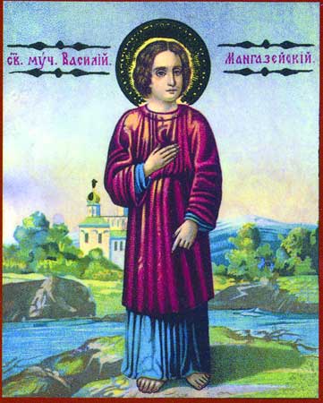 Святой праведный мученик Василий, Мангазейский Чудотворец - первый святой, прославленный на Сибирской земле. С его блаженной кончины, случившейся на самом рубеже XVI и XVII столетий, собственно, и началось активное просвещение инородцев, проживавших в Сибири, светом учения Христова. Святой мученик Василий был всегда особо почитаем не только среди русских, но и среди тунгусов, долган и других северных народов. Они прибегали к его защите, молитвенно обращались за помощью в охоте и рыболовстве, за исцелением от различных недугов, а через веру в благодатную силу святого - приходили к вере в Господа.