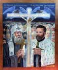 В алтаре нашего храма святителя Николая в Пыжах есть икона святого Царя-мученика Николая и святого Патриарха Тихона. Она была написана русским эмигрантом в Харбине в 1930 году, после того, как ему во сне трижды являлся некий старец в схиме, держащий в руках точно такой образ.