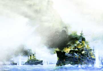 огнём русских орудий. Этот вынужденный манёвр, для японского флота теоретически самоубийственный, на