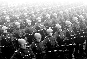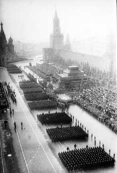 Парад начинался не коммунистическими гимнами, а русской мелодией Глинки "Славься!". Для каждого сводного