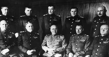 Слева направо: первый ряд - командующий войсками 1-го Украинского фронта Маршал Советского Союза Конев