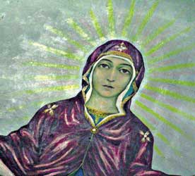 изображённой на центральной фреске непосредственно над алтарём, вдруг появилось лучезарное сияние. Оно