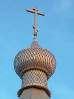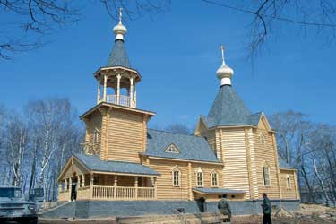 на службе в маленьком деревянном храме. Душу греют теплота и мягкость охристых