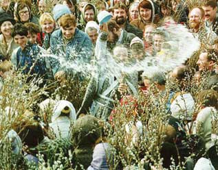 Множество людей приходят в этот день в церковь встречать и славить Господа, как некогда встречали и славили Его в древнем Иерусалиме. В руках они держат свечи и кроваво-красные тонкие прутики вербы, на которых пасутся стада мелких барашков, одетых в белые пушистые бархатные шубки. Чуть тронь их - и они в испуге посыплются, полетят, как горох, в разные стороны.