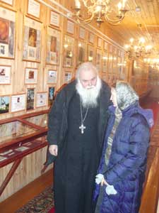 Настоятель обители приветливо принимает нас в своём кабинете. Во всю стену - книги. И рядом с ними... - старинные патефоны. Отец Алексий - удивительно бодрый для своего немолодого возраста батюшка. Человек с университетским образованием, некогда клирик кафедрального собора города Ярославля, он сам попросился, чтобы его отправили в "ссылку" в сельскую глубинку...