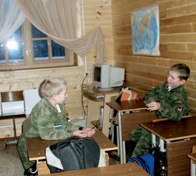 ... По дороге маршируют строем курсанты в военной форме. Это воспитанники кадетского корпуса, организованного в обители. Ведь один из попечителей Свято-Алексиевской пустыни - Главное разведывательное управление Минобороны. Кадеты живут "на казарменном положении" - в специально отстроенном для них двухэтажном корпусе. Встают на полчаса раньше, чем другие воспитанники, делают зарядку, надевают военную форму и спешат на построение. После этого они живут по общему расписанию: молитва, завтрак, уроки. Два часа отводится на курс молодого бойца. Его проводят опытные наставники: майор спецназа ФСБ, бывший "альфовец", а также сержант запаса, воевавший в "горячих точках". Кроме военного дела, мальчишек обучают навыкам спасательных работ в горах, под водой, во время пожаров, в том числе и лесных. Ребята с нетерпением ждут, когда у них появится зал для занятий борьбой и рукопашным боем. И обычно аппетит у мальчишек от такой физической нагрузки, да ещё и на свежем воздухе - отменный!