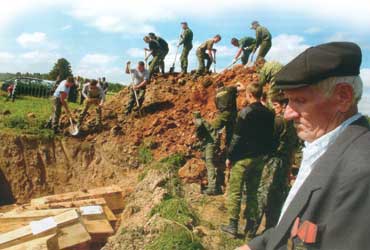 стечении большого количества народа проводится торжественное перезахоронение найденных останков героев