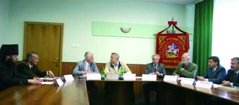 Владимир Владимирович Насонов, глава Можайского муниципального района, представил участников "круглого стола" - Александра Николаевича Крутова, заместителя председателя Комитета Госдумы РФ по информационной политике, Николая Сергеевича Леонова, члена Комитета Госдумы РФ по безопасности, генерал-лейтенанта КГБ СССР в отставке, Владимира Николаевича Крупина, секретаря правления Союза писателей России, отца Даниила, иеромонаха,благочинного Можайских церквей, настоятеля Никольского собора г. Можайска, Владимира