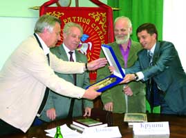 "Очень благодарен, что меня сюда пригласили, - сказал Владимир Николаевич Крупин. - Словно вернулся в свою армейскую юность: я служил в Кубинке. Когда отмечалось 150-летие Бородинской битвы, мы, солдаты, ездили на воскресники на поле, и уже тогда замечали, что русские памятники как-то поскромнее, нежели французский. Вроде они и оккупанты, захватчики, а как-то их монумент красуется получше. Потом, когда я уже занимался историей Бородинской битвы, видел, что к 100-летию битвы было много протестующих возгласов тогдашней общественности против засилья иностранщины... Только глубинная Россия могла родить Ломоносова, Васнецовых (это - мои земляки!). Местный архитектор Николай Васнецов из этого рода. Мы виделись с ним на освящении часовни по его проекту у истока Москва-реки. Без неё уже нельзя представить ни Россию, ни Московскую область, ни Можайскую землю".