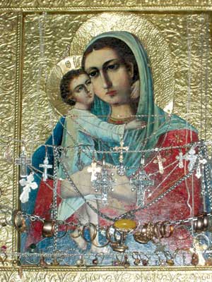 В августе 2003 года нас посетили пять мироточивых икон: "Избавительница Афонская" (память её установлена