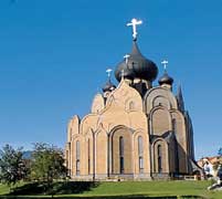 здесь уже - богатый православный мужской монастырь Преображения Господня