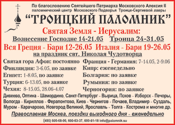Еженедельно в Дивеево, Оптину пустынь, Годеново, Серпухов, а также Псков, Новгород, Петербург, Селигер,