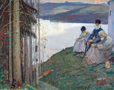 Михаил Васильевич Нестеров - человек, посвятивший большую часть своей творческой жизни поиску этического идеала в уходе от суеты жизни в мир духовных переживаний. Он был единственным из своих сверстников, кто в поисках возвышенного нравственного совершенства обратился к православию, к жизни русских монастырей - "тихих обителей". Его привлекает аскетическая строгость монашества, красота православных обрядов, жизнь в гармонии с природой. В полотнах художника, проникнутых лиризмом, поэтичностью, мечтами о человеческой цельности, образ святой Руси предстаёт как некий зачарованный мир, находящийся в гармонии не только с природой, но и с высшими Горними сферами.