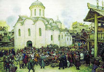 В 1395 году на Москву пошёл сметавший всё на своем пути непобедимый завоеватель всего Востока Тамерлан. В то время на всей земле не было войска, способного противостать ему. И тогда Евдокия посоветовала своему сыну, Великому князю Василию, перенести древний чудотворный образ, написанный по преданию апостолом Лукой, из Владимира в Москву. Всем известно, что в тот самый день и час, когда москвичи встретили Владимирскую икону на месте нынешнего Сретенского монастыря, Тамерлан отдал приказ своим войскам, уже стоявшим на берегу Оки, повернуть назад. Историки толкуют об этом эпизоде нашей истории и так, и этак. У православных есть об этом чуде своё предание. Сам же Тамерлан никому своё решение никак не объяснял: мог ведь за несколько часов уничтожить всё на русской земле, одно пепелище бы осталось. Но не стал. Или все-таки не мог? Конечно, не мог. Воли Божией не было.