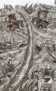 Да, Орда стала не та, что при Чингисхане и Батые. Вместо 2-3 заводных лошадей на каждого воина, теперь хорошо если была одна на десяток. О, если бы у Ахмата были заводные лошади! Ими можно и пожертвовать на переправе! А так приходилось ждать, теряя преимущества от бешенного дневного марша.
