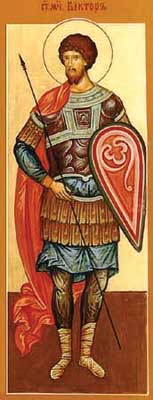 Святой мученик Виктор ("победитель" - лат.), италийский воин, пострадавший во II веке при императоре Антонине, гонителе христиан. Ни трёхдневное пребывание в печи, ни яд, ни кипящее масло не повредили ему. Тогда мучители, сняв со святого кожу, отсекли ему голову