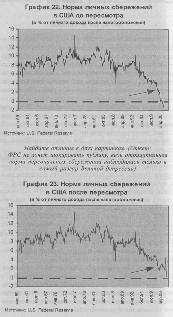 Мы не ставим под сомнение сам факт экономического подъема 1990-х годов в США. Речь идет о том, что манипуляции со статистикой приводили к искаженному представлению инвесторов о реальных темпах и масштабах подъема и, как следствие, к необоснованным инвестиционным решениям, в частности, к явной недооценке степени риска, связанного с вложением средств в американскую экономику.